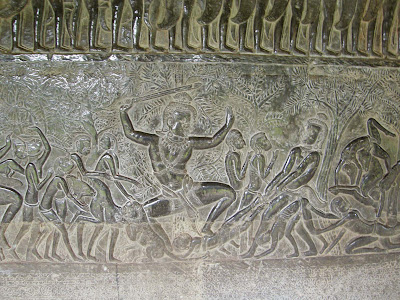 The outer gallery depicts the everyday lifestyle of the Angkor civilization in addition to historic events. This includes but are not limited to market and trading scenes, cockfights, festivals, and scenes with battles and processions. Each stone panel weaves a complicated tale of history and mythology. Figures within the outer gallery are easier to decipher due to its simplicity.